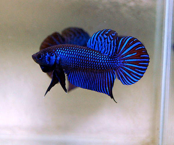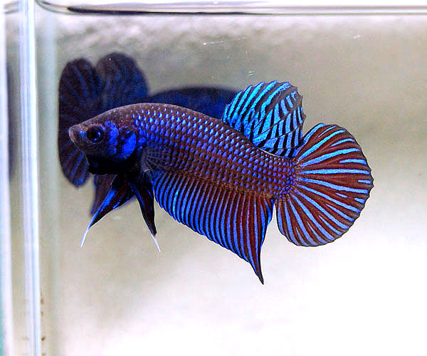 選抜淘汰を繰り返し、体型やヒレの形、発色の仕方はベタ・マハチャイエンシスと同じですが、