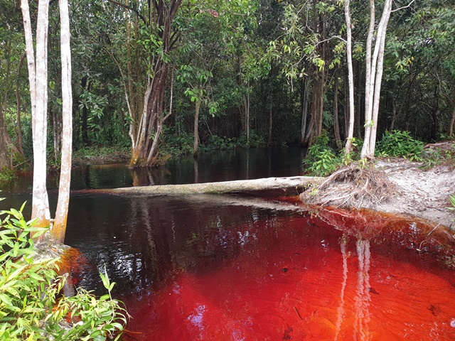 白い砂地に赤く染まる独特のブラックウォーターを発見!