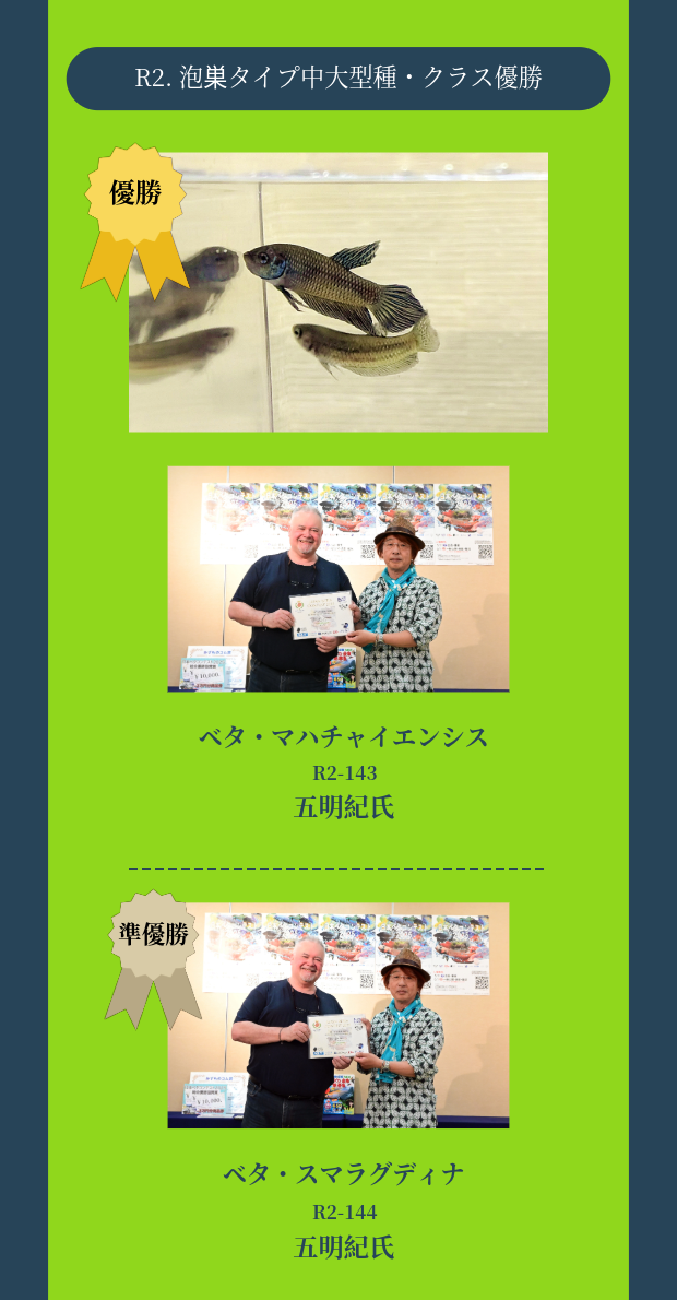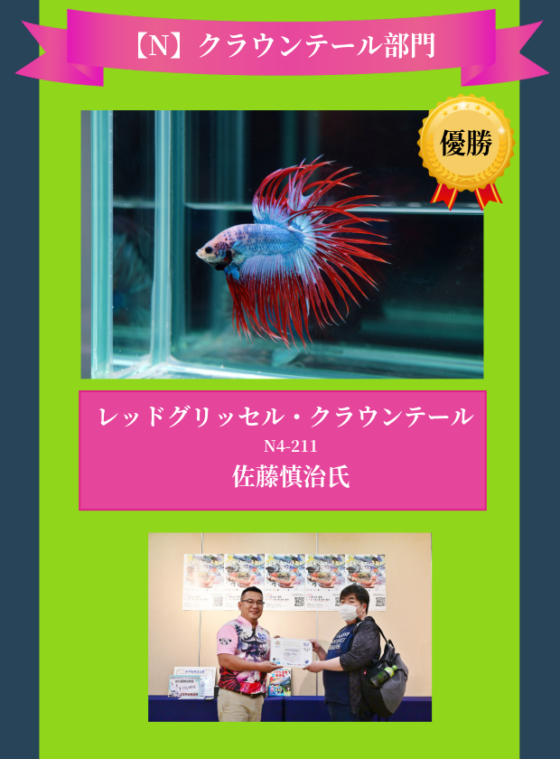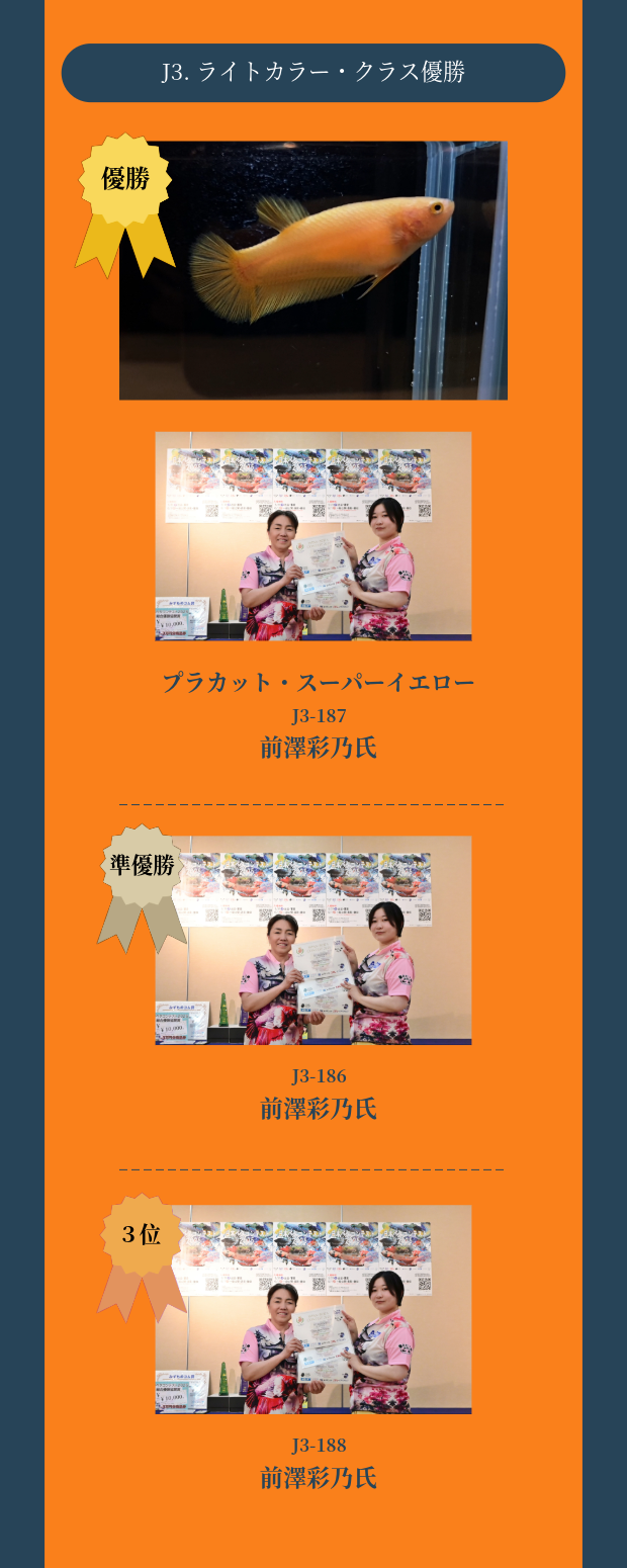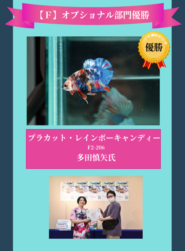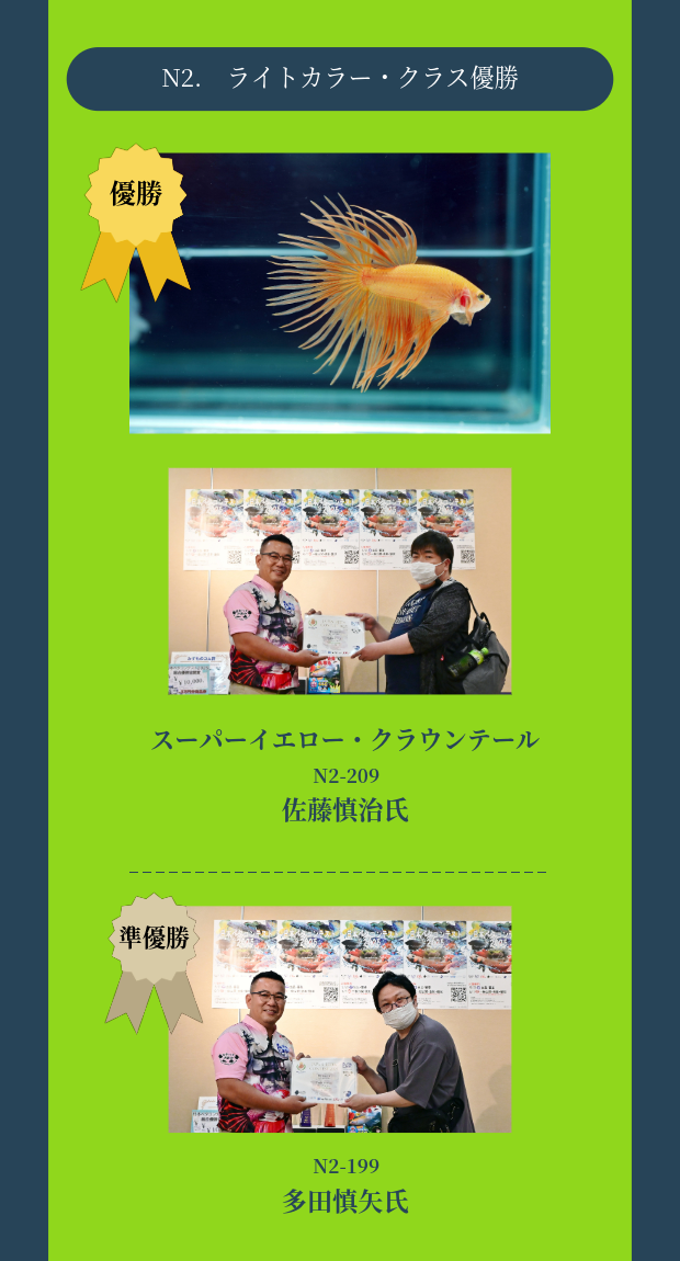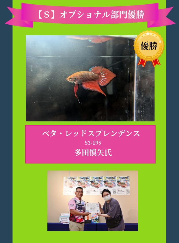 ○オプショナル部門を除く、<自家繁殖魚グループ>各部門優勝魚のなかから、総合優勝魚を決定いたします。