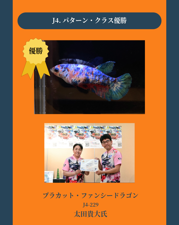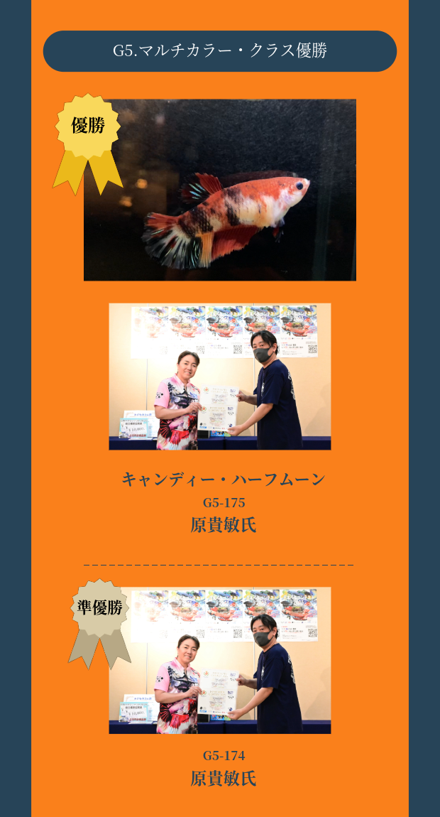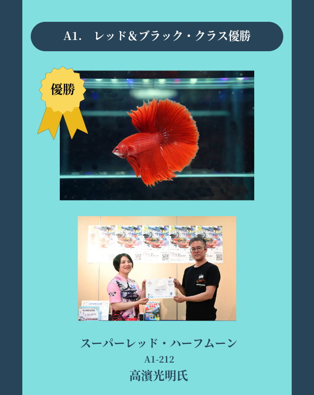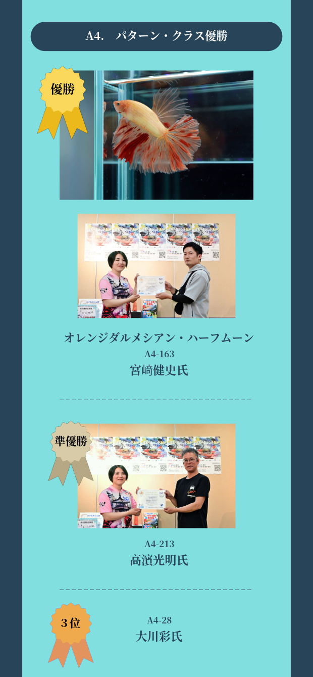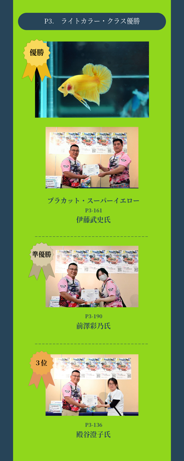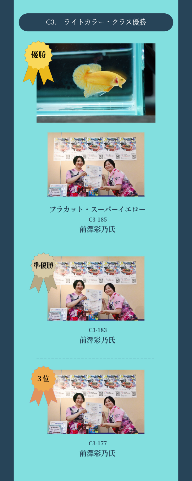 ○オプショナル部門を除く、<自家繁殖魚グループ>各部門優勝魚のなかから、総合優勝魚を決定いたします。
