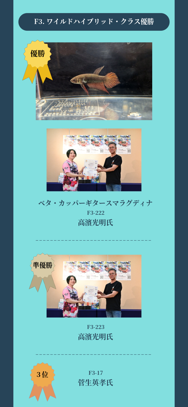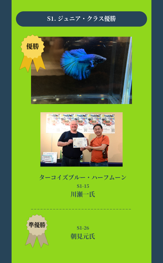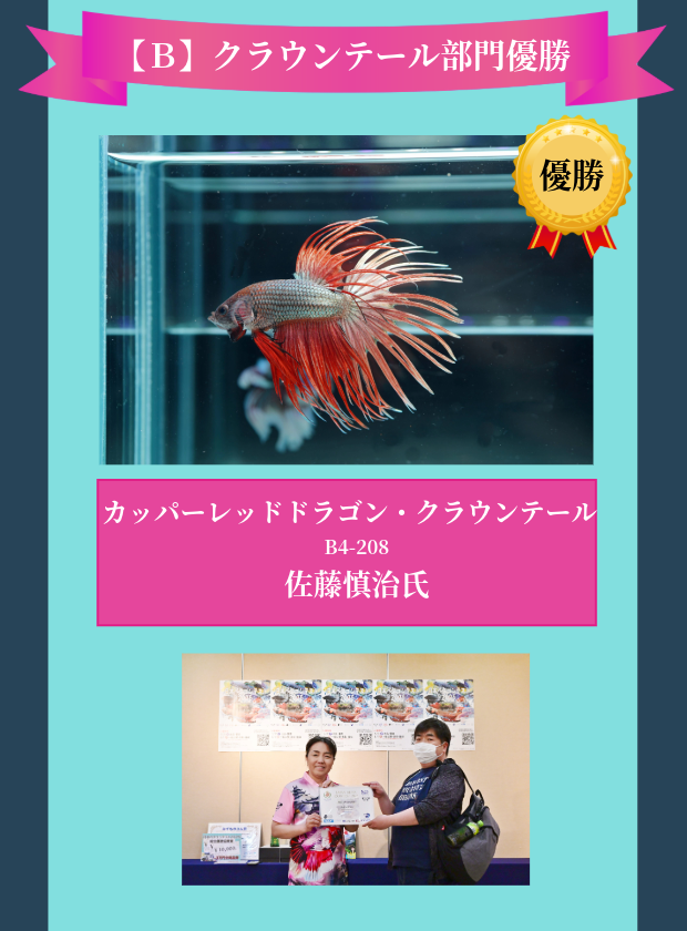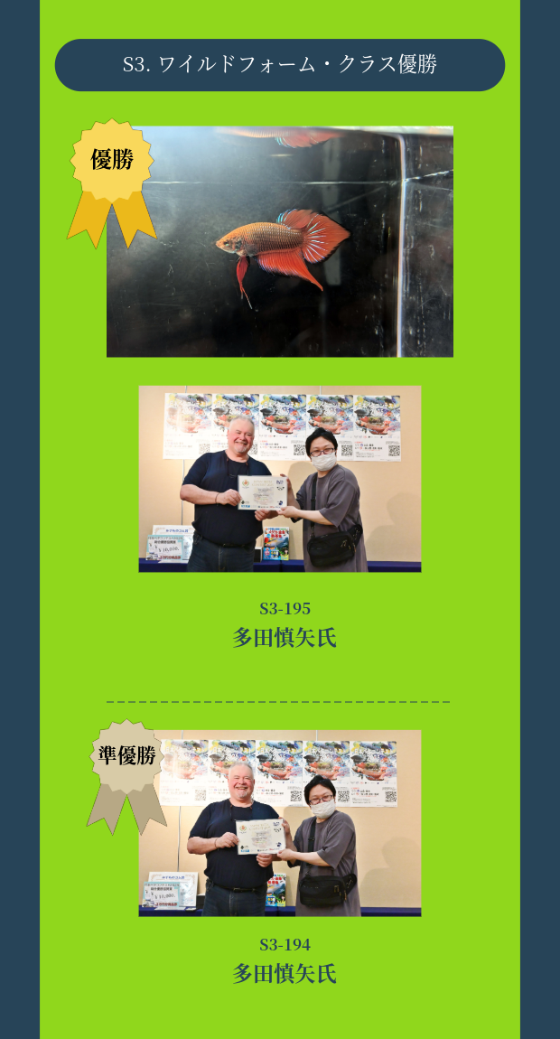 (日本ベタコンテストに初めて出品される方のみ。ショーベタのオス出品またはメス出品、ワイルドベタまたはワイルドハイブリッドのペア出品)