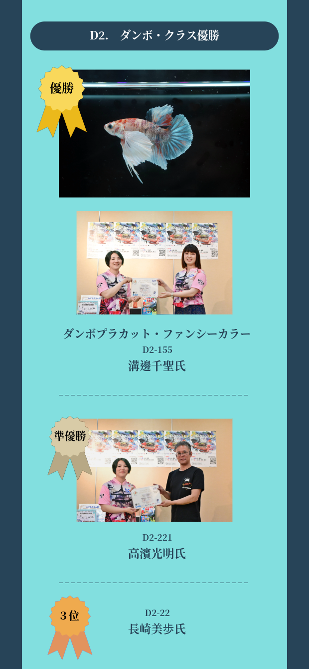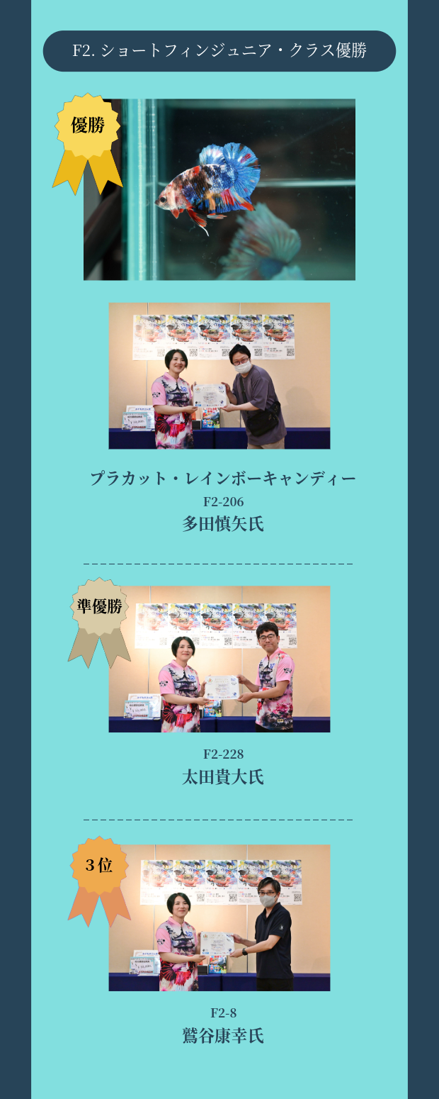 各クラス3位まで表彰されますので、飼育状態のよいショーベタならば、